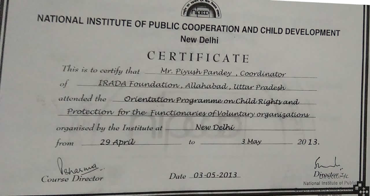 Our ParticipationThe following are the certificates of events in which IRADA Foundation staff members have participated:
